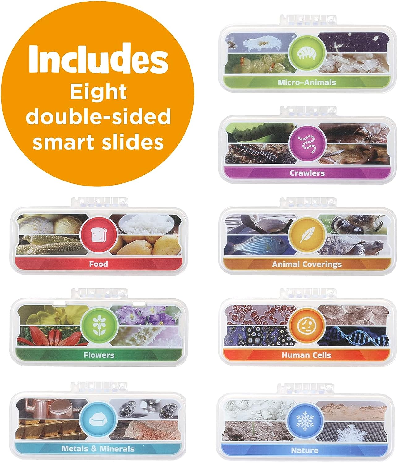 - Real microscope features up to 200x magnification; prepare your own samples using the reusable slides or use the tray to view samples that are too big for the slides